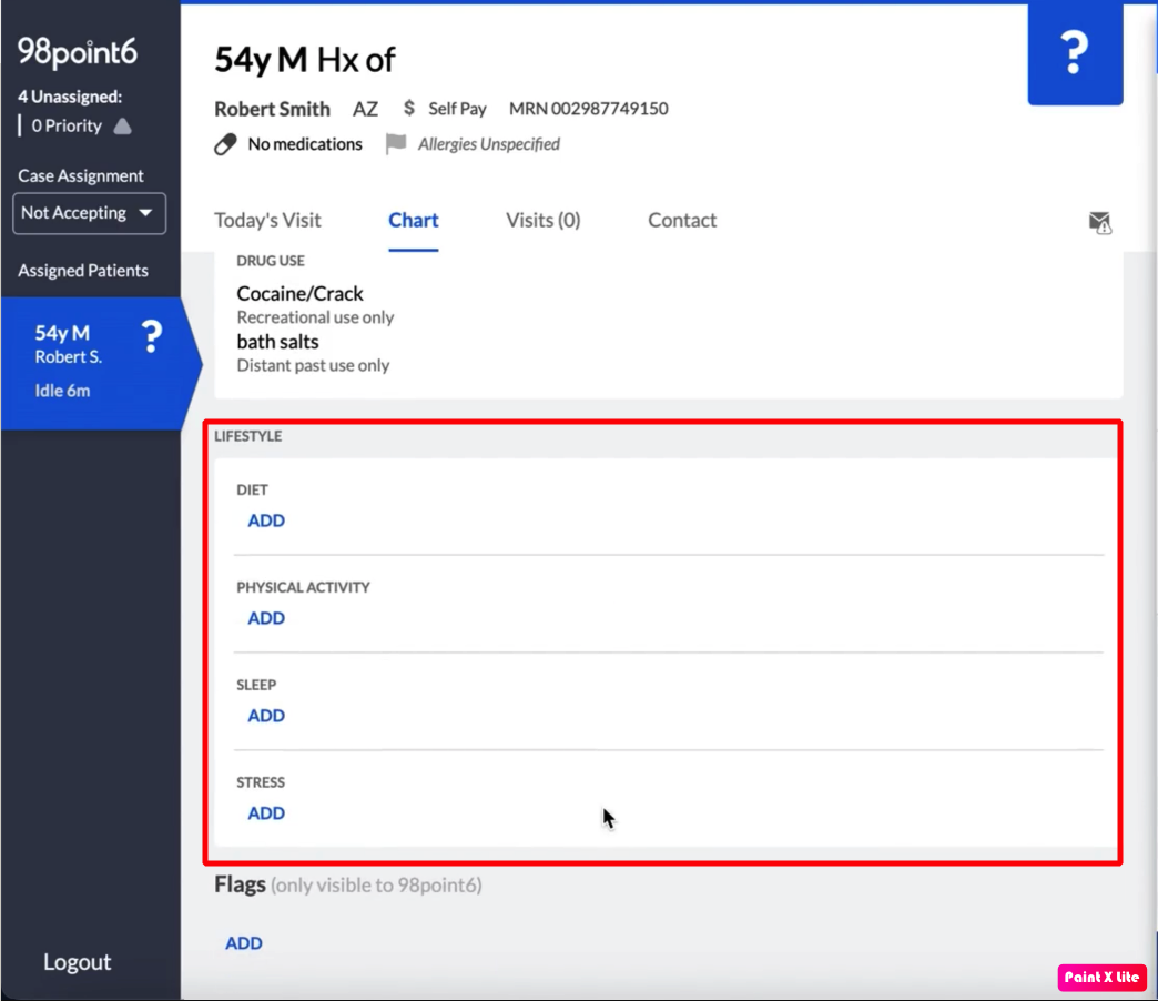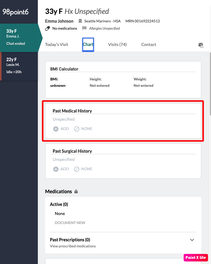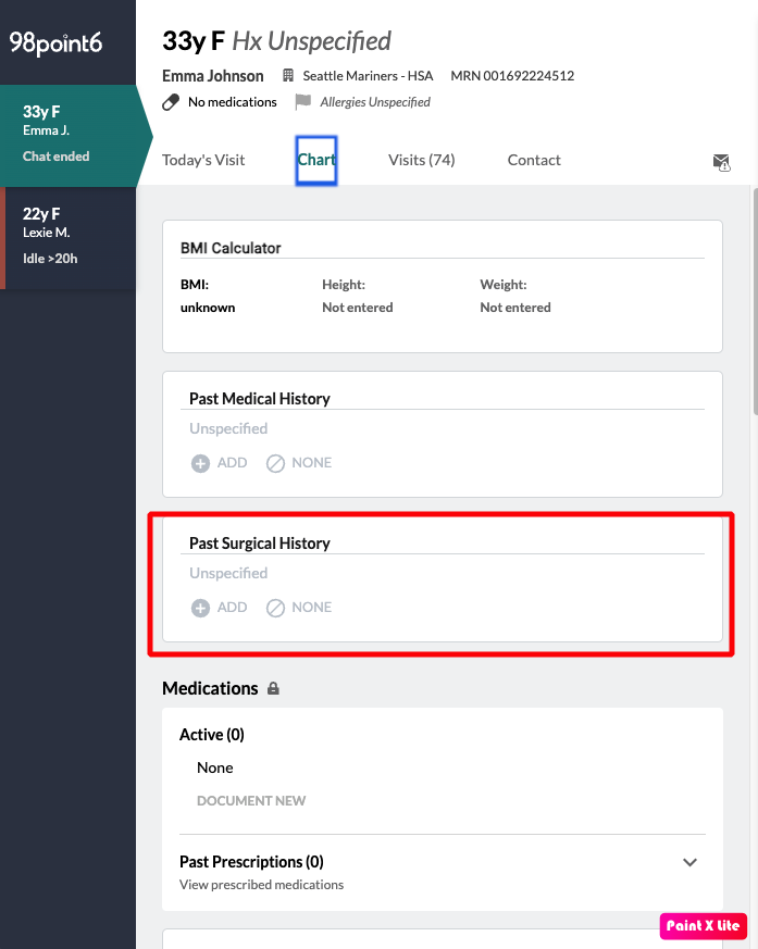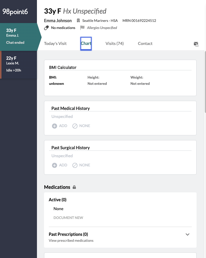 The Social History includes information the patient provided during their onboarding session, when registered their 98point6 account. Here, you’ll find information such as preferred language, race, occupation, and so forth.