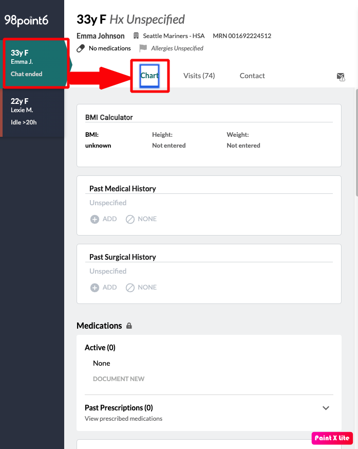 Click to select a patient from left side of the screen, and then select the Chart tab.