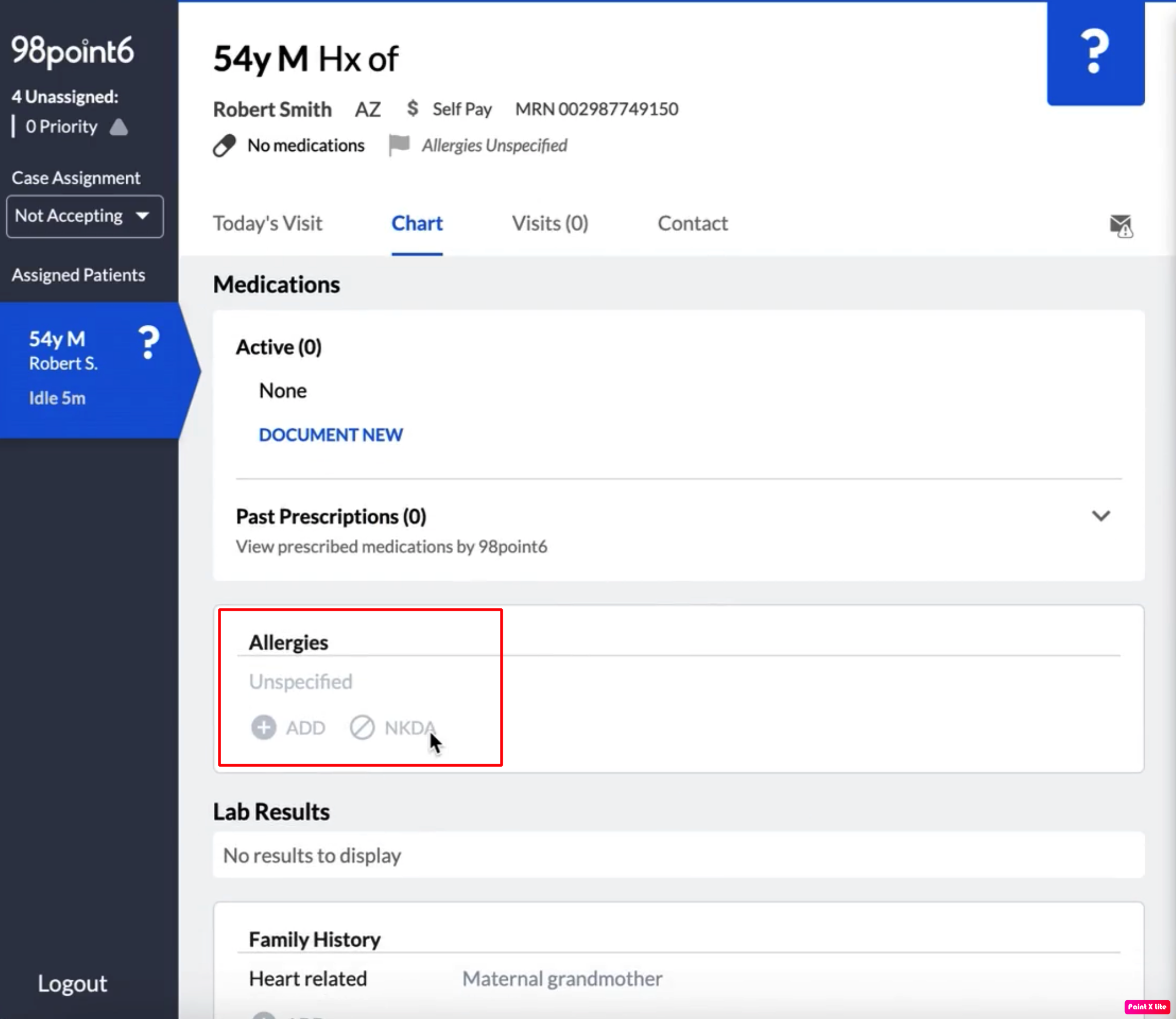 The Allergies section contains both environmental allergies, along with allergies to medications.