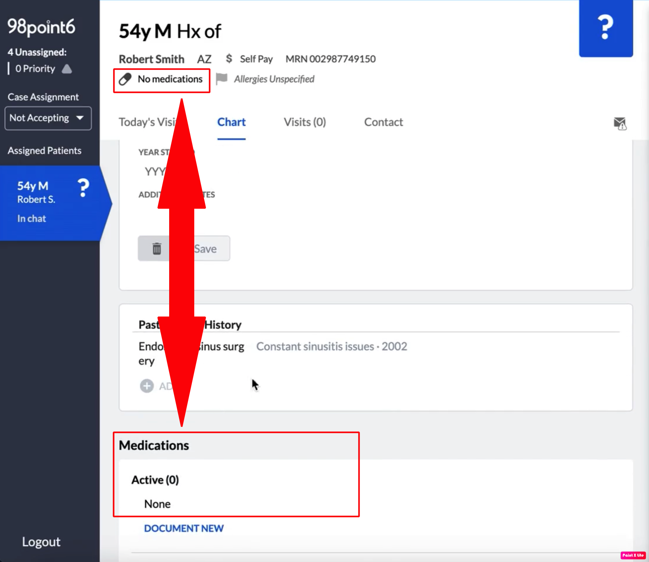 Medications automatically updates when clinicians prescribe medications during the patient visit.