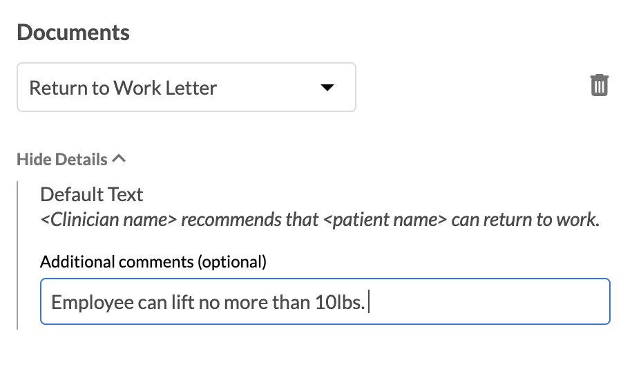 Clinicians can create documents, also known as Medical Recommendation Letters (MRL) for patients. These documents excuse patients from work or help enable them to return to work.