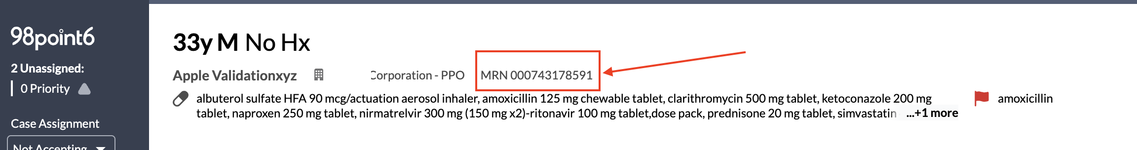 The Epic MRN is then pulled into, and then displayed on the Console, enabling the clinician access to the patient’s medical history.